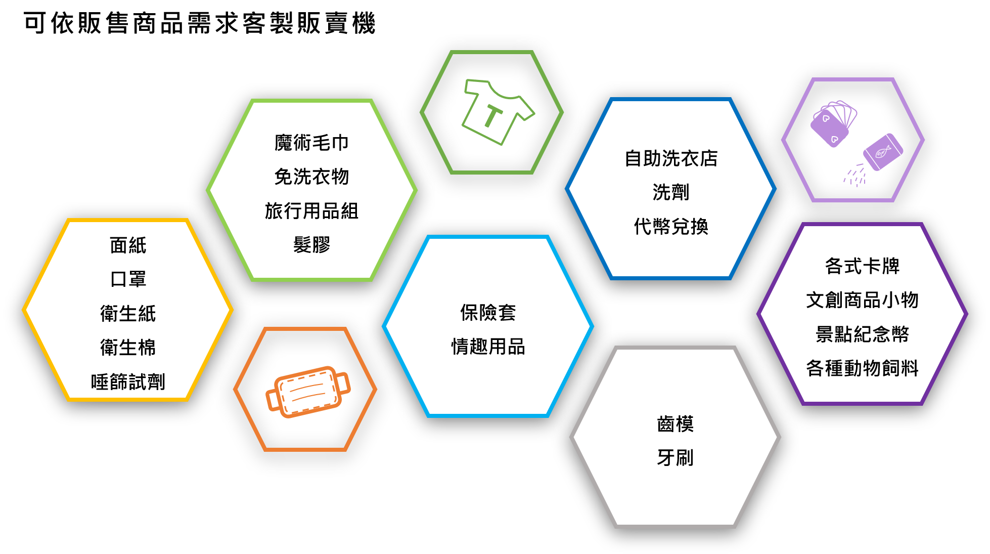 - 販售自動販賣機、複合式販賣機、面紙販賣機、口罩販賣機、洗劑販賣機、兌幣機